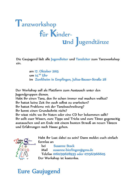 Die Gaujugend lädt alle Jugendleiter und Tanzleiter zum Tanzworkshop ein.